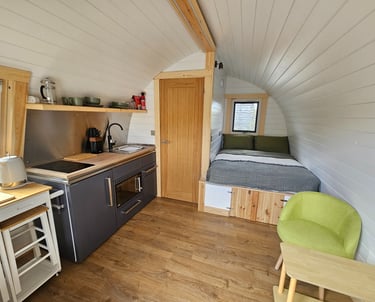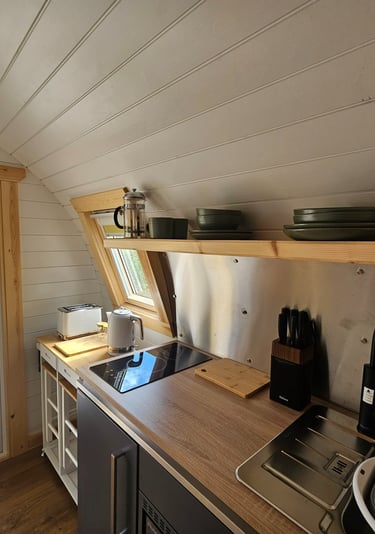 The Posh Bothy is a gorgeous space, it has a hob and microwave with convection oven, so you've really no need to venture out from your little nest - if you stay a night you'll wish you'd booked longer.