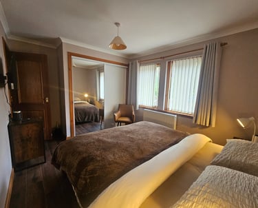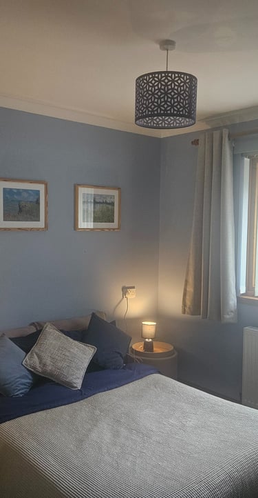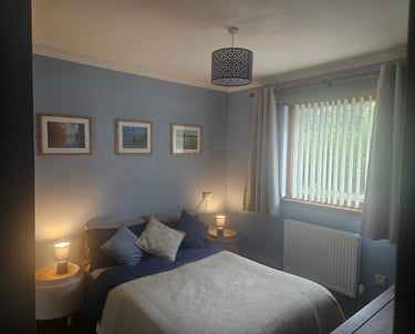 The smaller of the two rooms, on the road side of the house, The Blue Room is perfect for those on a tight budget. A very comfortable room, with a double bed and orthopaedic mattress, a large wardrobe and chest of drawers, Smart TV, chair and desk, along with a kettle and complimentary tea and coffee.