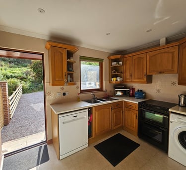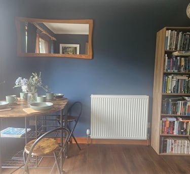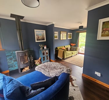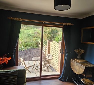 Access to my private living space is via the sitting room. This means I pass through the room when I leave and enter the house. This is always at sociable hours and can be at pre-agreed times (so you can chill out and relax in front of the woodburner without risk of being disturbed!)