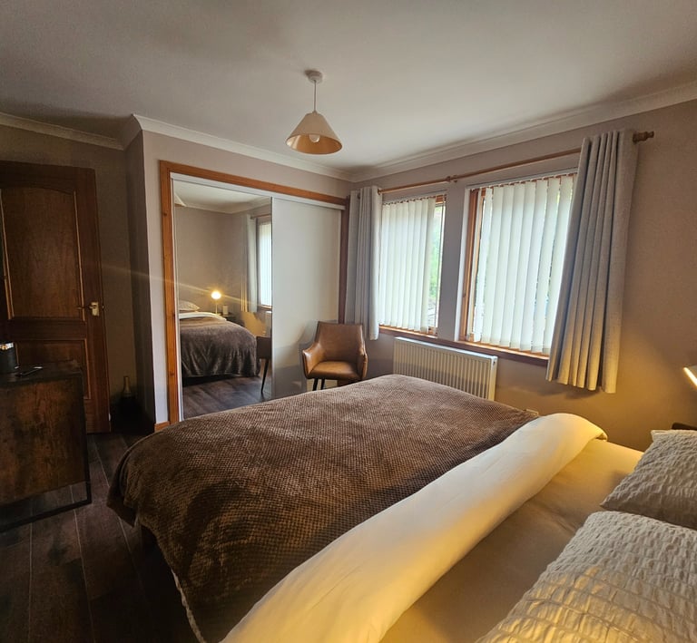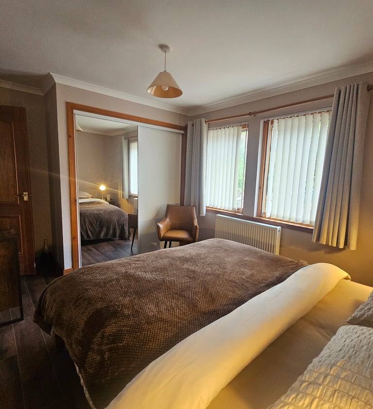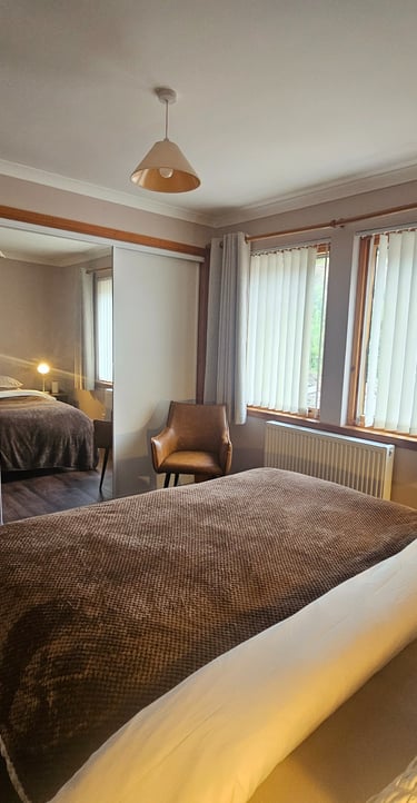 There are two double bedrooms in the cottage, plus spacious living space, designed to provide an intimate setting for couples or families but a degree of separation for solo travellers and small groups.